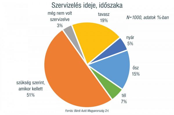 A válaszadók alig 22 százaléka nyilatkozott úgy, hogy foglalkozik autója téli felkészítésével, míg 19 százalékuk a leggyakrabban tavasszal szervizeli gépjárművét. A többség azonban azt állította, hogy nem teszi időponttól függővé, mikor keresi fel a szervizt, csak akkor fordul szerelőhöz, ha meghibásodott az autója.