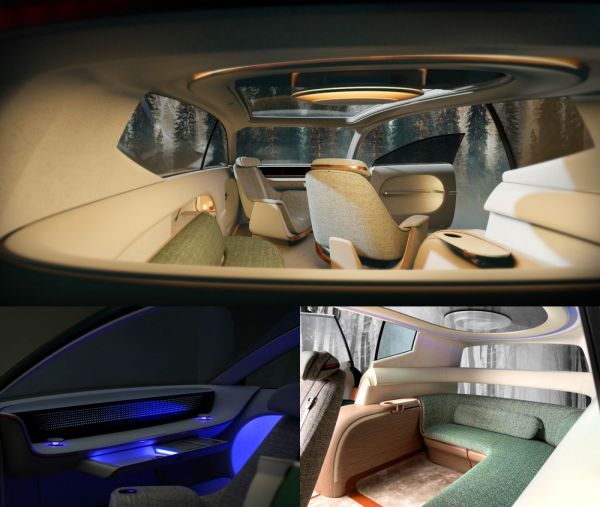 Üvegtető alkotja a plafont, a gyáriak szerint a nappal beáramló természetes fény – legyen szó akár ködös őszi reggelről – jókedvre deríti az utasokat, akik egy sokoldalúan alakítható beltérben foglalhatnak helyet. A kormány itt is csak szükség esetén ugrik elő, a műszerfalon egy szuperszéles, 27 colos képátlójú monitor tájékoztat és segít a kényelmi- és médiarendszerek, valamint a szellőzés kezelésében.