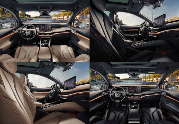 Az akkumulátornál a hőmenedzsmenten javítottak, van már villámtöltésre való előkondicionálás (vagy a navigáció a betervezett töltőponthoz közeledve automatikusan aktiválja, vagy a sofőr menüből), amelynek jóvoltából kellően nagy teljesítményű töltőoszlopon a 10-80%-os töltési idő 30 percre csökken. A szabványos hatótávolság egyébként 570 km körül alakul, az Enyaq Coupé az áramvonalasabb kialakításával pár km előnyben van a kombihoz képest. A modellfrissítést követően a Škoda Enyaq áttér az ME4.0 szoftverre, amellyel együtt teljesen áttervezett menü és grafika is jön, vannak gyorselérést biztosító virtuális gombok, könnyebb lett a klímavezérlés.