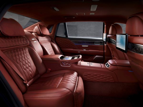 Igazán a belső térrel akarják lenyűgözni a vásárlókat – utasokat, a műszerfalnál például a modern vívmányokat és az analóg élményt, azaz kapcsolókat kombinálják. Külön nyitható az első és a hátsó napfénytető, a nyújtott karosszéria hátsó üléseit gombnyomásra ággyá lehet alakítani, a C oszlopnál újság/könyvtartó zsebet is elhelyeznek. Az utastérben felhasznált fabetétek különlegessége, hogy azoknak az elkészítése során újrahasznosított papírt is feldolgoznak, a fém betéteket a hagyományos koreai sanggam intarzia-készítései technikával munkálják meg. Az ülések támlájában 10, lapjában 2 légpárna segítségével valósítják meg a masszázsfunkciót, a ki- és beszállás megkönnyítésére az ajtó felőli légpárnákat leengedi az elektronika megálláskor, Sport mód aktiválásakor pedig teljesen felfújja az oldalsó párnákat. Az aktív zajkioltás teszi csendessé a haladást, a nyújtott karosszériánál a jármű üzemi hangjai – irányjelőz-kattogás, vezetőtámogató rendszerek figyelmeztetései – a vezetőülés fejtámlában elhelyezett hangszórókból szólnak, így csak a sofőr hallja őket, a többi utast nem zavarják ezek a hangok. Antibakteriális felületkezelést kap az utastér, a fedett tárolókban UV-fényes fertőtlenítést valósítottak meg.