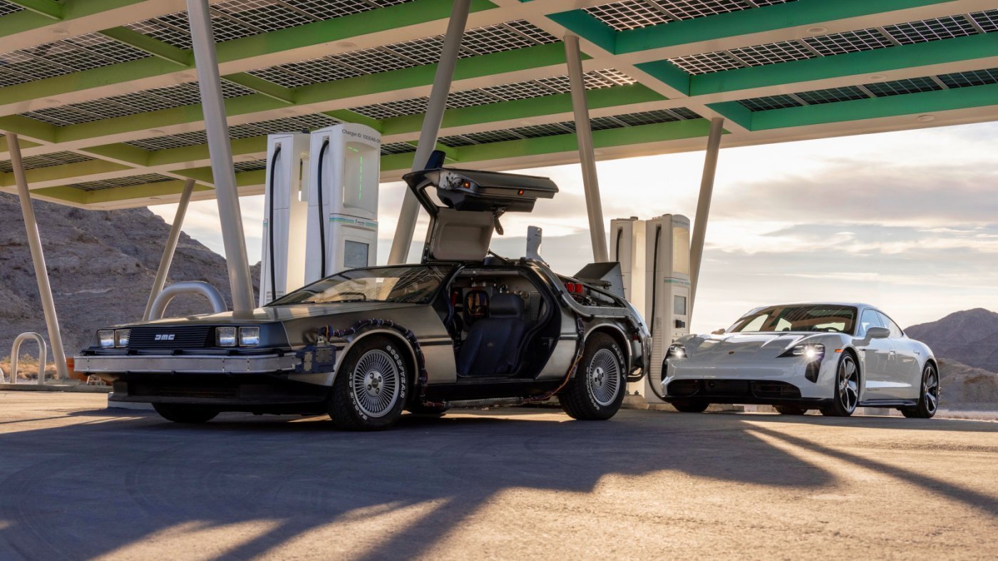 A Vissza a jövőkbe mozikban az időutazást a fluxuskondenzátor teszi lehetővé, annak működtetéséhez pedig egy atombomba energiája, a forgatókönyv szerint 1,21 GigaWatt kell, de végszükség esetén egy villámcsapás energiája is megteszi. Mostantól kezdve pedig már a Porsche autógyár által biztosított elektromos töltőhálózat is – leszámítva azt az apróságot, hogy nem egy ponton, hanem Észak-Amerikában az Electrify America 670 és az európai Ionity hálózat 372 töltőpontján elaprózva.