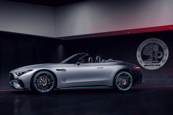 Noha az utolsó évadban nem a Mercedes-AMG istálló határozta meg az F1-ben a történéseket, korábban hosszú éveken át ők voltak a mérce – talán ezért is nem az utolsó, hanem a 2 évvel ezelőtti megjelenéssel látják el a Mercedes-AMG SL 63 4MATIC+ Motorsports Collector Edition-t. Az ezüstmetál fényezés obszidiánfeketébe megy át az autó hátulján, ott a jellegzetes csillagminta, és nem hiányoznak a Petronas színei sem.