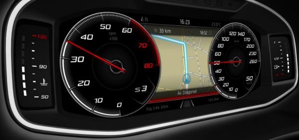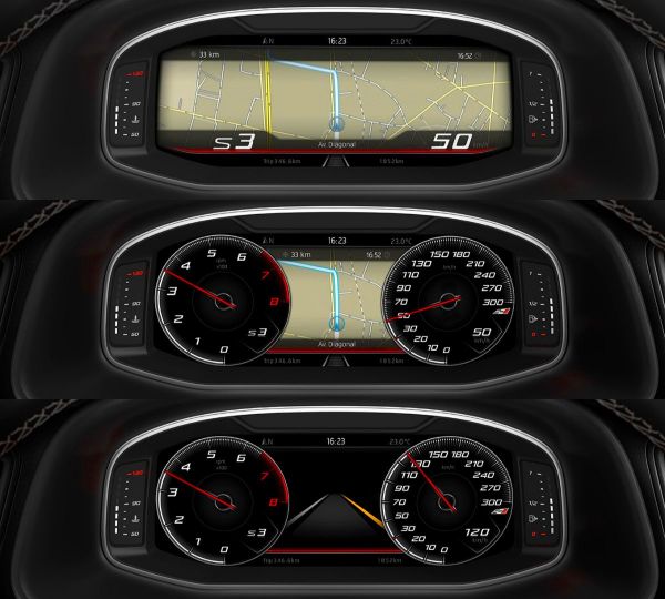 A Volkswagen konszernen belül az Audi volt az úttörője a virtuális műszeregységnek, amely aztán bekerült a Volkswagen egyes típusaiba, a Polo számára elkészítették a kisebb méretű változatát is, majd nemrég a Škoda is megkapta, végül pedig a Seathoz is megérkezett. Először csak az Ateca és Leon modellekhez lesz választható 400 euró felár ellenében (a Leon Cupra 300-asnál széria), az év vége felé pedig az Arona és az Ibiza típusoknál is be lehet majd fizetni rá. Analóg vagy digitális mutatók, kis vagy nagy térkép választható menüből, a sebesség, a km-számláló, az idő és a külső hőmérséklet minden esetben ott van a megjelenített információk között.