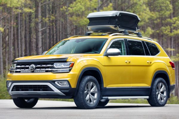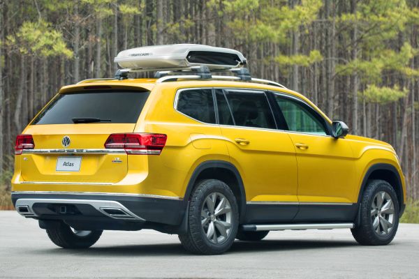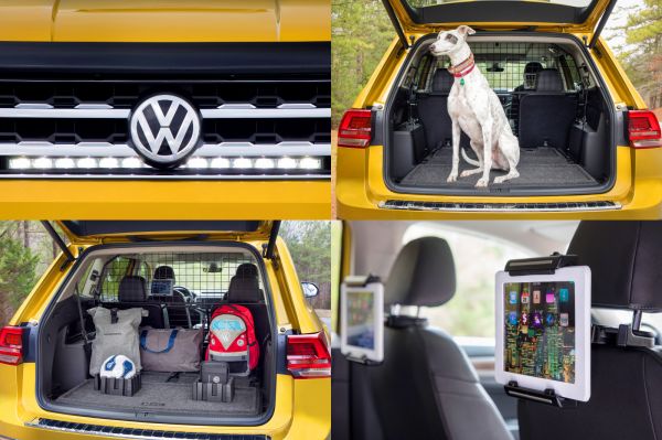 A hűtőrácsba került egy LED-es kiegészítő fényszóró, a tetőre pedig egy bővíthető (legfeljebb 501 literes térfogat) Urban Loader nevű dobozt helyezték. Az utastérben is van az új elem, az első ülések támlájára univerzális táblaszámítógép-tartót szereltek. A csomagteret állatokat biztonságosan visszatartó háló választja le, és fényképen ugyan nincs, de strapabíró, a középső üléssor hátulját is védő pléd is van a fedélzeten. A Weekend tanulmánynál alkalmazott több kiegészítő egyébként már a VW Atlas forgalmazásának kezdetén megvásárolható lesz, de például az Urban Loader tetődoboz sorsa még bizonytalan.