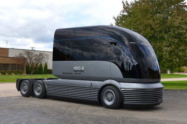 Hat évvel ezelőtt dobta piacra első sorozatgyártású tüzelőanyagcellás autóját a Hyundai, és tavaly decemberben jelentette be, hogy 6,4 milliárd dollárt költ az ilyen járművek és az infrastruktúra fejlesztésére. Ez utóbbi befektetés része a HDC-6 Neptune elnevezésű nyergesvontató, és az ahhoz kapcsolódó Translead nevű hűtőpótkocsi bemutatása. Különlegességük az Art Deco stílusú megjelenés, név szerint a New York Central Railroad vasúttársaság szerelvényeit tervező Henry Dreyfuss nevét emelték ki a sajtóanyagban.