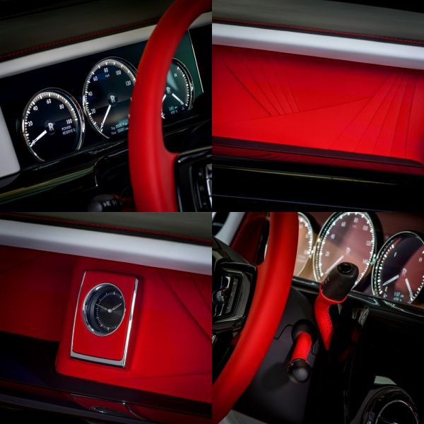 A gyár dizájnerei álmodták meg a különleges autót, amelynél különleges kristályokat tartalmazó lakkréteget fújtak a Magma Vörös fényezésre, összesen öt réteget hordtak fel, a rétegek között egyenként öt órás kézi polírozással simították el a felületet. Az utastérben Brilliant Arctic White színű bőrkárpitot és Mugello Red Shooting Starlight tetőkárpitot találunk, a műszerfal galériáján pedig vörös vitorlákat lehet látni egy végigmenő üveg borítás mögött. A küszöbborítások a Rolls-Royce márka 115. születésnapjáról emlékeznek meg.