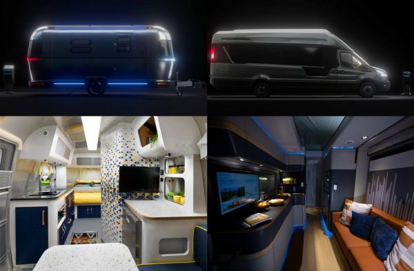 Az Airstream alumínium héjas lakókocsik gyártója a Thor Industries nevű cég, amely a floridai RV SuperShow rendezvényen mutatta be a jövő igényeire szabott eStream elnevezésű tanulmányát. Ennek különlegessége, hogy saját akkumulátora és hajtómotorja van, így nem egyszerűen koloncként gurul a vontató mögött, de nagy terhelésnél – gyorsítás, emelkedő – hajtani is képes.