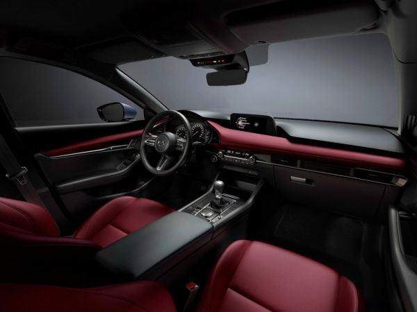 A belső térnél a prémium-irányba elmozdulást igyekeznek hangsúlyozni az új megjelenéssel, a műanyagok új mintát kaptak, amelynek mélysége a helyzettől függően változik. A piros bőr belső az ötajtós változatnál, a Skyactiv-X motor esetén érhető el, a 8,8 colos képátlójú központi kijelző széria. Tágabb tartományban állítható a kormánykerék, a váltókar előrébb és magasabbra került, meghosszabbították a könyöklőt, minden kezelőszerv és tájékoztató egység a vezető felé fordul.