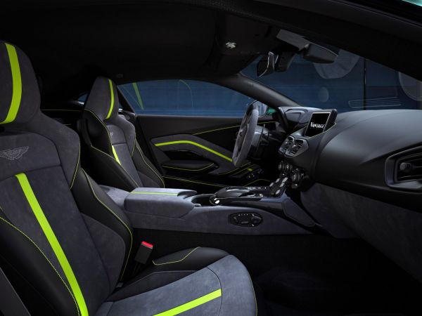A felvezetőautóról ismert Aston Martin Racing Green mellett fekete vagy fehér lehet a szín, fényes vagy selymes fényű finis közül lehet választani, és elérhető matrica-versenygrafika is. Az új légterelők végsebességnél 200 kg leszorító-erőt termelnek, egyedi a hűtőrácsbetét és először kap gyárilag 21 colos felniket a Vantage. Szürke Alcantara kárpitot használnak limezöld díszekkel, de felár ellenében ettől eltérhetnek a vásárlók.