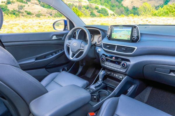 Az alapáron adott rádiónak 5 colos a képernyője, a 7 colos képátlójú fejegységet ajánlják azoknak, akiknek szükségük van a különböző eszközök csatlakoztatására, a legnagyobb, 8 colos monitorra kombinált készülékben hardveres navigáció is van – a tapasztalatok szerint utóbbira egyre kisebb az igény, hiszen manapság az emberek már a valós forgalommal is számoló telefonos alkalmazásokat preferálják. Annyiból lehet még értelme befizetni a legnagyobb tudású fejegységre, hogy csak ehhez lehet kérni a Krall prémium-hifit – ez utóbbi szintén egy olyan újdonság a Tucson típus életében, amelyet a „lefelé váltó” vásárlók kedvéért valósítottak meg. Puha műanyagból készítik a műszerfaltestet, vezeték nélküli telefontöltés lehetősége is választható az elöl utazóknak, hátul külön USB-töltő van. Négyféle lehet a belső hangulat, a szürke, fekete és bézs mellett a bordó az alternatíva, új elem a szellőztethető első ülés.