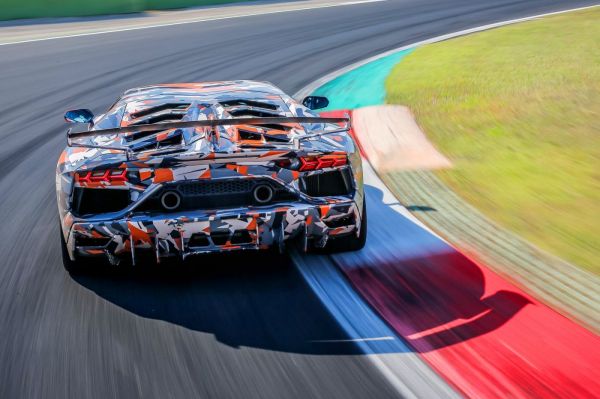 Az SVJ, azaz SuperVeloce Jota elnevezésű autóban még villanymotoros rásegítés nélkül kerül a 6,5 literes V12-es blokk, amelynek teljesítményét hivatalosan még nem árulták el, csak annyit mondanak, hogy 1 lóerőnek mindössze 1,98 kg-ot kell mozgatnia. Azt, hogy mire képes az autó egy Nürburgring-körrekorddal bizonyítják, Marco Mapelli ült a volán mögött, amikor 6:47.3-as köridőt ért el az autó még álcázott karosszériával – 2,3 másodpercet lefaragva a Porsche 911 GT2 RS köridejéből –, az utcai autóhoz képest bukókeret és a feláras, Pirelli P Zero Trofeo R abroncsok jelentették a változást.