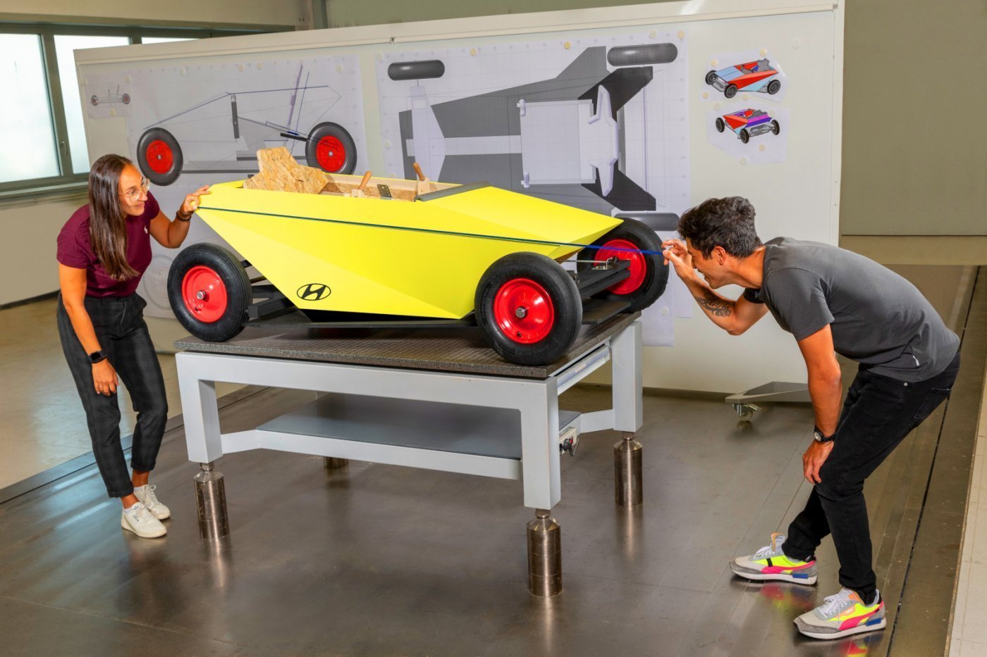 Némi kreativitásra is szüksége lesz annak, aki meg akarja építeni a Hyundai Soapbox nevű „versenyautót”, hiszen az európai fejlesztőrészleg mérnökei által részletesen kidolgozott konstrukciónak csak a tervrajzait nem közölték, csak összeszerelési utasítást tettek közzé.