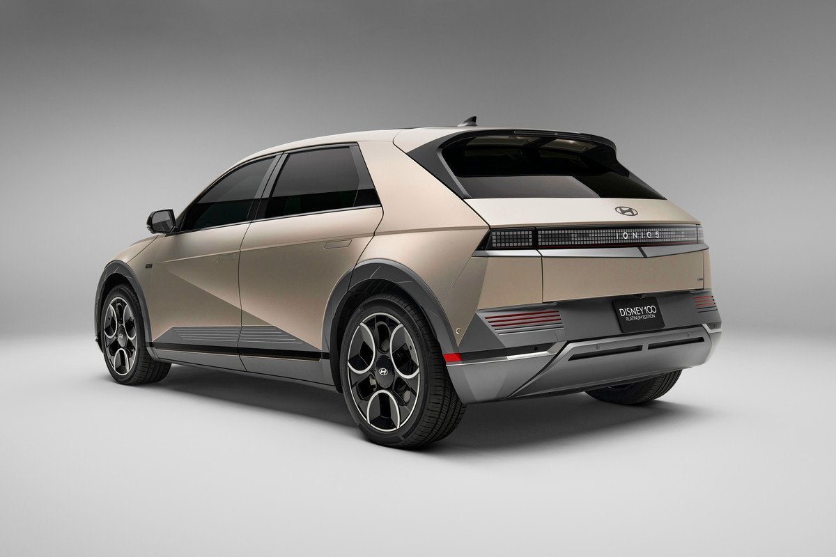 A karosszériát matt arany színűre (Gravity Gold Matte a hivatalos neve az árnyalatnak) fényezik, és megtartják azokat a felniket, amelyeken Miki egér fülére emléketető körök vannak. Egyedi kezdőképernyőt kap a digitális grafika, a beltér több pontján Miki egér motívumot és Disney 100 logókat lehet látni. 2024 elején indul az Egyesült Államokban a Hyundai Ioniq 5 Disney 100 Platinum Edition forgalmazása, a vételárat még nem árulták el, de azt igen, hogy 1000 példányt készítenek belőle.