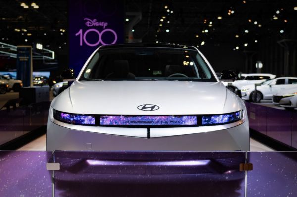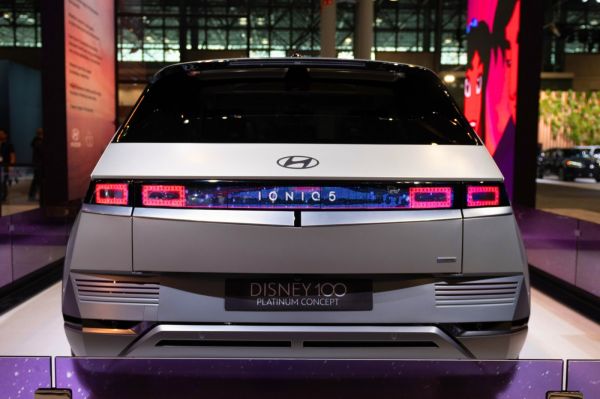 A New Yorki Autószalonon még tanulmányként állították ki a Hyundai Ioniq 5 Disney 100 Platinum Edition-t, amellyel a szórakoztatóipari cég születésnapjára készültek. Ez annyi változással kerül most sorozatgyártásba, hogy elhagyják az orr- és hátsó panel mögötti monitort, helyette a normál átlátszó plexit használják.