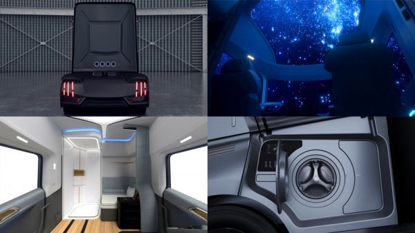 A vezetőfülke otthonos kialakítást kapott, hogy a több napos távollét során a sofőr jól érezze magát, a lehető legtöbb mindent bambuszból készítették. A két ülés mögött apró konyha, teljes értékű zuhanyzós fürdőszoba is van, az ágyat le lehet engedni. Mosogató- és mosógép is van a Homtruck H fedélzetén, azokhoz kívülről lehet hozzáférni. A Geely egyébként úgy számol, a forgalmazás 2024-es megindulásakor 3-as szintű önvezetésre lesz képes a kamion, 2026-ban jön majd a 4-es szintű önvezetés, és 2030-ra remélik az 5-ös szintű, azaz mindenféle emberi beavatkozás nélküli önvezető rendszert.