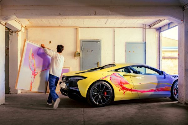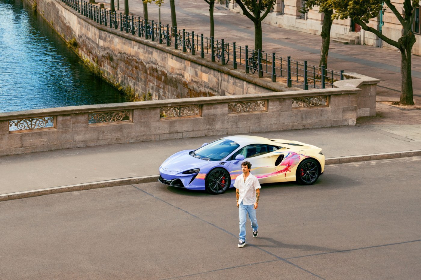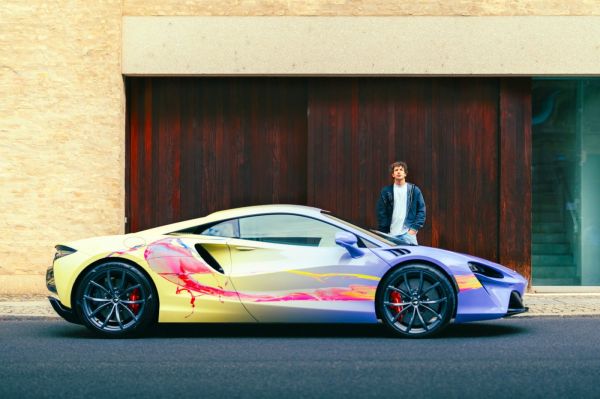 A fiatal német művész különleges színvilágú absztrakt műveket készít, a McLaren Artura esetén a lila és a sárga alapszínek mellett narancs és rózsaszín is megjelenik, amelyekkel az autó vonalait hangsúlyozza. Az Artura típusnév egyébként az Art és Future, azaz művészet és jövő szavak egyesítésével jött létre.