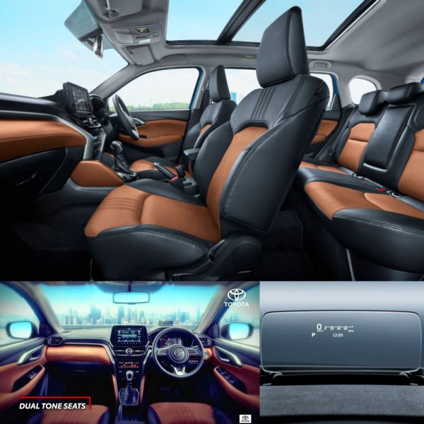 Bent digitális műszeregységet (7 colos képátló) és 9 colos képátlójú érintőképernyős fejegységet találunk kétszínű műszerfallal és kárpittal, a fel-a-fejjel kijelző mellett a szellőztethető első ülések is újdonságot jelentenek, az USB-csatlakozók mellett vezetéknélküli telefontöltés is elérhető. Sok kapcsoló ismerős lehet a Suzuki modelljeiből. Az alapmodellbe a Suzuki 1,5-ös szívómotorja kerül 12 voltos lágyhibrid rendszerrel, a 103 lóerős erőforrásnál az 5 fokozatú kézi kapcsolású váltót 6 fokozatú automatára lehet cserélni, illetve – kézi váltónál – lehetőség van összkerékhajtás rendelésére is. Az opciós hajtás a Toyota 1,5 literes 3 hengerest használó öntöltő hibrid rendszere 116 lóerős rendszerteljesítménnyel, ez csak elsőkerékhajtással jön.
