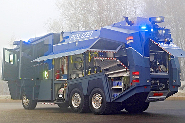 Még 2010-ben kezdték meg szolgálatukat a német rendőrség kötelékében a WaWe10 (Wasser Werfer 10) elnevezésű páncélozott vízágyúk, amelyeket a mifelénk leginkább tűzoltó-felépítményeiről ismert Rosenbauer cég készített Mercedes alapra. Tömegoszlató eszközről lévén szó nem aprózták el a védelmet, a 33 tonnás saját tömegben még nincs benne a tíz köbméteres víztartály jelentette többletsúly. Kövek, Molotov-koktélok és sörösüvegek ellen hivatott védelmet nyújtani a páncélozás – jellemzően futballhuligánok elleni harcban vetik be ezeket a járműveket, de van, hogy éveken keresztül nincs rájuk szükség.
