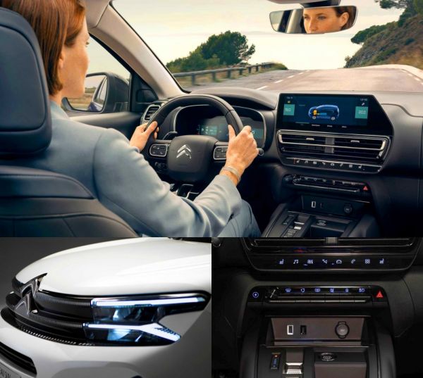 Úgy alakítják át a műszerfalat, hogy annak közepén szabadon álló, 10 colos képátlójú érintőképernyőt helyeznek el, a szellőzőnyílások alacsonyabbra kerültek. Új a középkonzol, ahol azért még mindig találunk dedikált szellőzés-kapcsolókat, az előválasztókar helyét apró kapcsolók veszik át, van üzemmódválasztó is, és több tárolóhely és egy második USB-csatlakozó is van a két első ülés között. Az új első üléseknél 15 mm-rel vastagabb szivacs teszi kényelmesebbé az utazást. A Citroën C5 Aircross műszaki részleteit még nem közölték, könnyen lehet, hogy ez a típus is megkapja a nagyobb kapacitású akkumulátort használó plug-in hibrid hajtást.