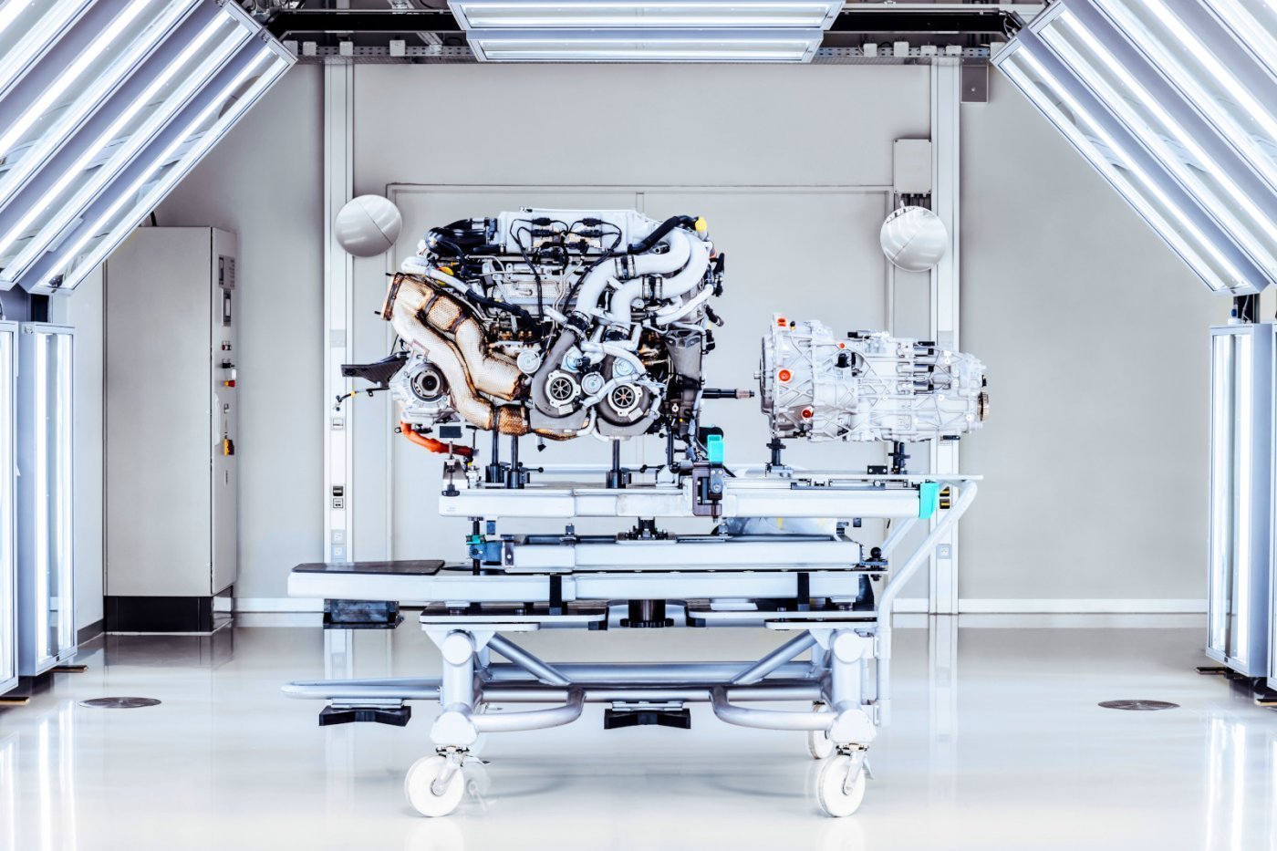 A cél egy, a V12-es motoroknál nem nagyobb, 400 kg tömegű erőforrás megépítése volt, amit úgy értek el a mérnökök, hogy 2 darab biturbó W8-as blokkot 90°-os szögben egymáshoz építettek. Külön kihívást jelentett, hogy például nem voltak elég nagy tudású motorpadok a tesztüzemhez, szóval először azt is ki kellett fejleszteni és megépíteni. Először 2001-ben indították be az első, kézi munkával több mint 3500 alkatrészből összerakott blokkot, ami rögtön tudta a kívánt 1001 lóerős teljesítményt. Ekkor aztán jöttek a problémák, amelyek megoldása még éveket vett igénybe, például a forró kipufogógázok elvezetése miatt először itt alkalmaztak teljes egészében titániumból készített kipufogórendszert. A hűtőrendszer is párját ritkítja, összesen 40 liter hűtőfolyadék kering a két körben, az alacsony hőmérsékletűben 15 liter folyadék gondoskodik a töltőlevegő hőmérsékletének csökkentéséről.