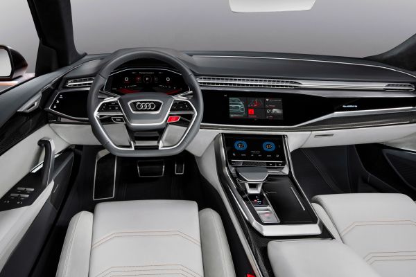 A downsizing a luxuskategóriát se kíméli, az új Audi Q8-as szabadidő-kupénál például nyolchengeres teljesítményt ígérnek, de csak 3,0 literes V6-os van a motorháztető alatt. Ezt nem csak két turbóval, de elektromos légsűrítővel is ellátták, és még hibrid hajtás is van, egy 31 LE/170 Nm teljesítményű villanymotor is segít a benzinesnek. A rendszerteljesítmény 476 LE/700 Nm, ami 4,7 másodperces 100-ra gyorsulásra elég, a csúcssebesség elektronikusan korlátozott 275 km/h. A mindössze 0,9 kWh kapacitású lítium-ion akkumulátor teljesítménye arra elég, hogy elektromosan parkoljon az autó, illetve torlódásnál kis tempóval araszoláskor ne kelljen a belső égésű motort használnia.