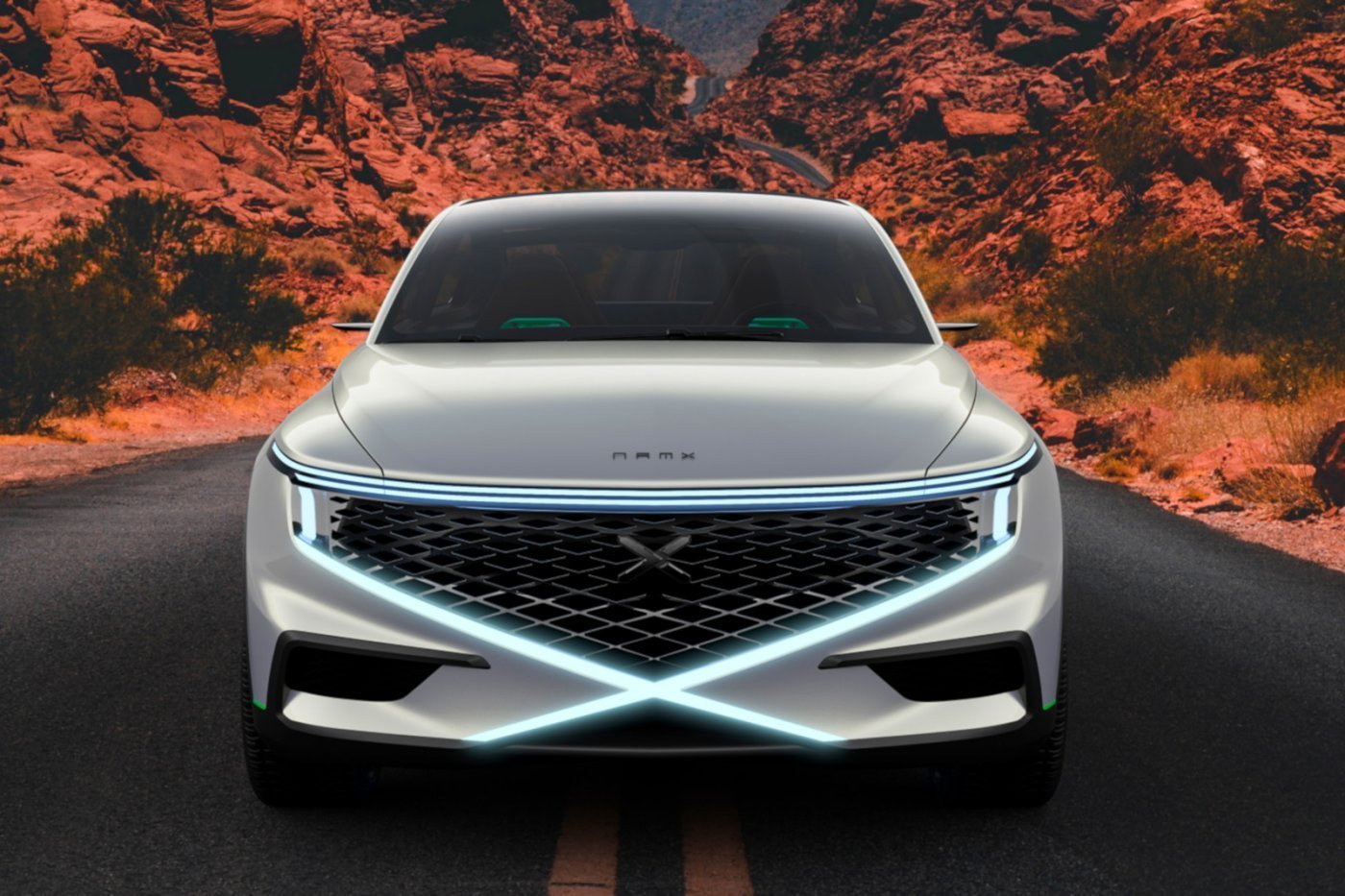 A párizsi NAMX Tech nevű startup tüzelőanyagcellás autókat akar gyártani 2025-től, de már idén ősszel, a Párizsi Autószalonon kiállítják az első tanulmányukat, az itt látható szabadidő-kupét. A megjelenést az olasz Pininfarina stúdió készítette, a megrendelő kérése az volt, hogy az egyre inkább áramvonalas tojásra hasonlító megjelenéssel ellentétes legyen a külső, szóval vannak élek a karosszérián, és X módjára keresztezik egymást elöl a LED-csíkok.