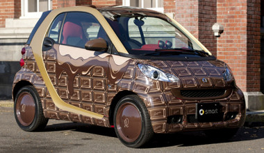 A luxustermékekkel foglalkozó Q-Pot márkánál dolgozó Wakamatsu Tadaaki által megalkotott autó esetén következetesen végigvitték a csokoládé témát, nem csak a karosszéria arany/barna árnyalatokban végrehajtott színezése, de a csokoládé mintájú borítás az ajtókon és a belső tér is erről árulkodik. Utóbbi esetén például olvadó pralinévá alakult az óra. A kifejezetten a Bálint napra készített autót 2,36 millió jenért lehet megvásárolni, a normál Smart ára 1,84 millió jen – elég sok pénz ez pár négyzetméter csoki fóliáért…