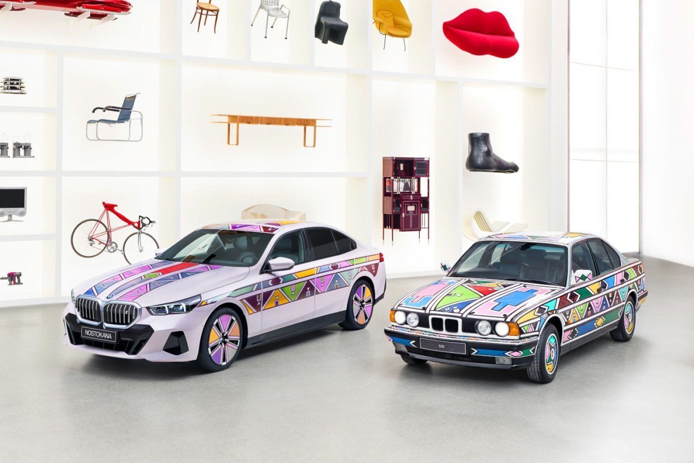 A dél-afrikai Esther Mahlango még 1991-ben festett meg saját stílusában, élénk színű geometriai formákkal egy 525i-t (E34), ami a mai napig az egyik legjellegzetesebb darabja a BMW Art Car sorozatnak. Erre emlékeznek most a legújabb 5-ös alapján készített BMW i5 Flow NOSTOKANA alkotással – Esther Mahlango első fiának nevét vették át.