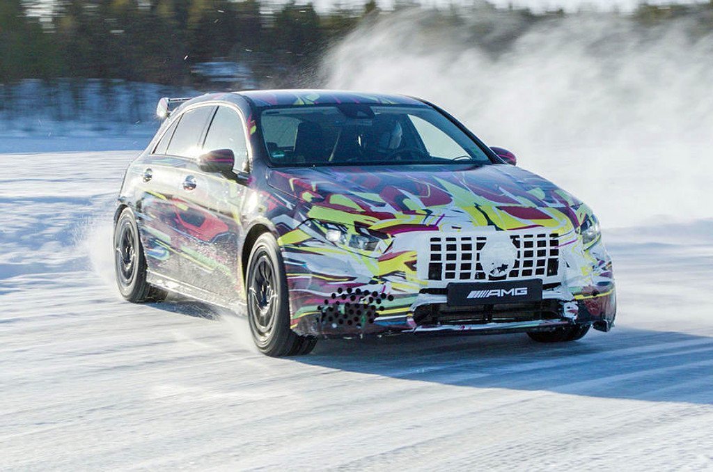 Néhány meghívott újságírót autóztatott meg a Mercedes-Benz Svédország északi részén, egy befagyott tavon kialakított pályán, a színes álcázással ellátott A45 prototípus anyósülésén mehettek pár kört úgy, hogy Reinhold Renger, a cég vezető instruktora ült a volán mögött. Az M260-as családba tartozó 2,0 literes négyhengeresnek annyi alkatrészét tervezték újjá, hogy az szinte új motornak számít, alaphelyzetben 390, az S változatban pedig 420 lóerőt tud majd – nemhivatalosan, hiszen ezek az értékek csak becslések.