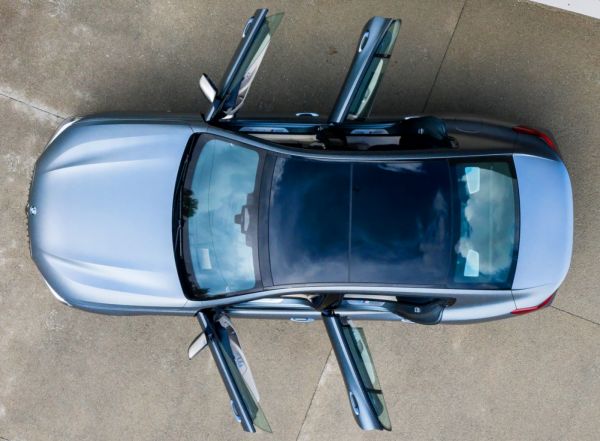 Meredekebben áll a szélvédő, hogy a lendületesen ívelő tetővonal alatt még a második sorban is maradjon kellő fejtér; az üléspróbán egy nyitható üvegtetős példányt lehetett kipróbálni, és azt kell mondjam, hogy még 1,9 méteres magasságommal is kényelmesen tudok ülni a második sorban annak köszönhetően, hogy erősen ki van mélyítve a tetőkárpit. Kifejezetten nagyvonalú a lábtér is, „magam mögé” ülve még kétujjnyi hely volt a térdem előtt, a 6-os Gran Coupé érezhetően szűkebb volt ennél.