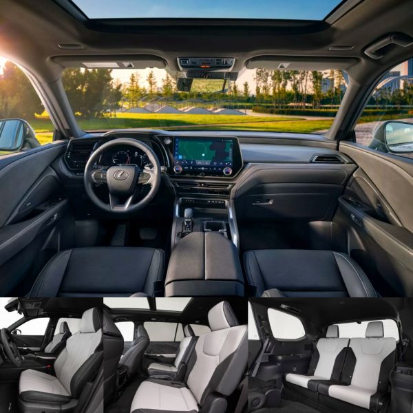 A TNGA-K alapra felépített 3 üléssoros karosszériát több ponton is megerősítették (strukturális ragasztó, több hegesztési pont), hogy a nagyobb méretek (hossz 5159 mm, tengelytávolság 2949 mm) miatt ugyanolyan kényelmet és kifinomultságot tudjon, mint a testvérmodellek (NX, RX). A 3 sor mögött a tetőig pakolva 569 literes a csomagtér, a 2 hátsó sor ledöntése után 2747 literes raktér jön létre. A második sorban 60/40 arányban osztott pad vagy 2 kényelmes fotel lehet, utóbbiak között pohártartókat is tartalmazó konzolt helyeznek el. A műszerfal közepén 14 colos képátlójú érintőképernyő trónol, opciós a fel-a-fejjel kijelző és a 23 hangszórós Mark Levinson hifi.
