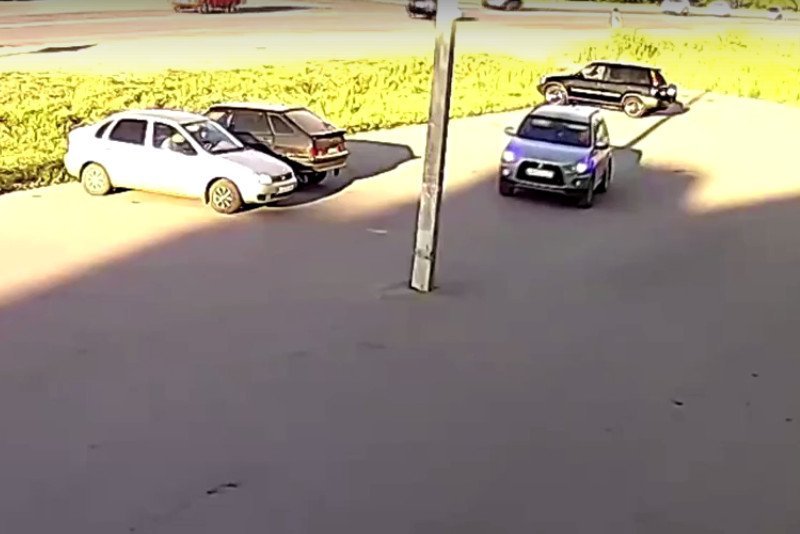 Lehet, hogy nem ideális az oszlop elhelyezkedése a parkoló közepén, de amennyire azt a térfigyelő kamera felvételéből meg lehet állapítani, már egy ideje ott áll. Egy biztos, nem hirtelen dobták azt le az épp kiálló Mitsubishi szabadidő-autó elé, márpedig annak sofőrje egyenesen nekihajt az orra előtt lévő oszlopnak. Meglepetés nincs, a beton legyőzi a műanyagot és fémet.