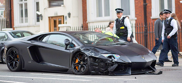 Olyan hirtelen történt ez, hogy nem volt idő már fékezni, és a szabályosan leparkolt Nissan miatt a kitérő manőver se jött szóba. A Mazda elejének ütközve a mattfekete szuperautó a levegőbe emelkedik, nagy ívű szárnyalása pedig a leparkolt BMW elejének ütközve ért véget. Az anyagi kár jelentős, alaposan át lett rendezve a Lamborghini orra, különös tekintettel az első felfüggesztésekre, személyi sérülés nem történt.