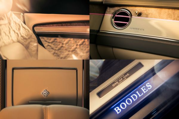 A karosszéria külsejére Powder Pink színű díszcsíkokat festettek fel a Mulliner műhely szakemberei, az első sárvédőkre jelvények kerültek. Az utastérben is megjelenik a Powder Pink szín, de az igazi újdonságot az ajtókárpitokra és az üléstámlákra varrott Be Boodles motívum jelenti, a pontosan 278 566 öltéssel 6 óra alatt végeztek a speciális varrógépek. Az ékszergyártó által készített medált a könyöklő előtt, a váltókar mögött helyezték el. A műszerfalon és az ajtón használt kettős díszbetét felső része fa, alsó része tizedmilliméter vastag kő, a kettőt Powder Pink színű díszcsík választja el. Ugyanilyen színű a szellőzőnyílások vízszintes pereme, a levegő útját elzáró gombokat 24 karátos arannyal vonták be.