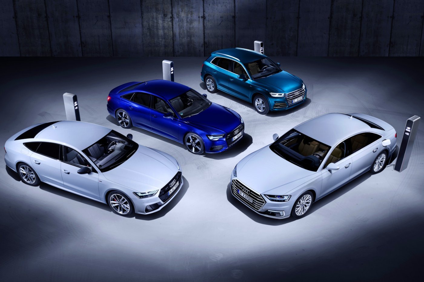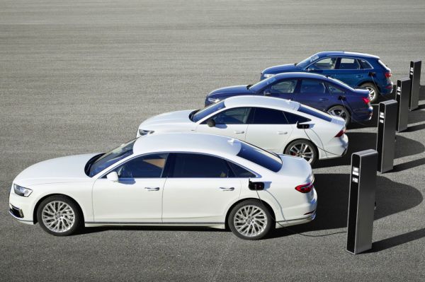 A Genfi Autószalonon egyszerre négy darab hálózatról tölthető hibrid modellt mutat be az Audi, ezek közül a márka csúcsmodelljeként az A8 60 TFSI e kapja a legmagasabb rendszerteljesítményt (443 LE/700 Nm), a 14,1 kWh kapacitású akkumulátorral 40 km az elektromos hatótávolság. Amíg az A8-asban hathengeres a benzinmotor és nyolcfokozatú automatikus váltót használnak, a másik három autónál négyhengeres a benzinmotor és hétfokozatú duplakuplungos a váltó – utóbbiak két teljesítményszint közül lehet választani. A TFSI 50 e esetén 295 LE/450 Nm áll a vezető rendelkezésére, míg az 55 TFSI e 363 LE/500 Nm-t kínál, mindnél 40 km-es elektromos hatótávolságot ígérnek. Fékezésnél 80 kW-nyi energiát tudnak visszatermelni az autók, a mechanikus fékek csak 0,4 G-nél nagyobb lassulásnál lépnek működésbe, ezen kívül még hőszivattyú is segíti az üzemanyag-megtakarítást.
