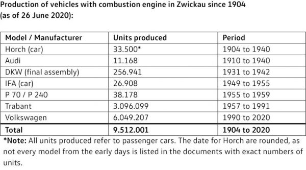 Zwickauban 1904-ben kezdett működni a Horch márka autógyára, ahol Audikat is készítettek. DKW, IFA és P-70/P-240 is készült itt, mielőtt a Trabantok jöttek. A Volkswagen 1990-ben vette át az üzemet, az évek során Polo, Golf és Passat típusokat gyártottak itt. Érdekes, hogy a Volkswagen által kiadott fényképeken 1990 májusában még fehér színű Polo az első példány, míg az egymilliomodik autó elkészültét dokumentáló fényképen már sötétszürke…
