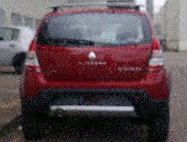 Kissé homályos a kép a felfrissített Dacia Sandero hátuljáról, de ezért kárpótol az álcazás hiánya. A Stepway hátsó lámpái látványosabbak lettek