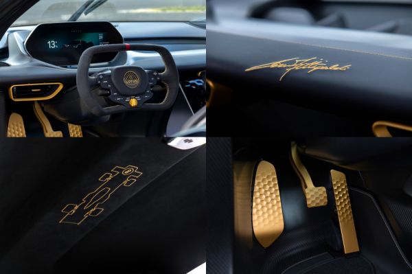 Szerencsés véletlen, hogy a Lotus márka szponzorának, a John Player Special-nek ikonikus fekete-arany megjelenése is pontosan 50 évvel ezelőtt debütált a díjnyertes Type 72 versenyautón, így magától értetődően az Evija Fittipaldi is ezt a külsőt kapja. Ezt olyan finomságokkal egészítik ki, mint a versenyautó karbon tetőben megjelenő, kézzel arany festékkel kiemelt felülnézete, kézzel öltik fel a műszerfalra a bajnok aláírását arany cérnával.
