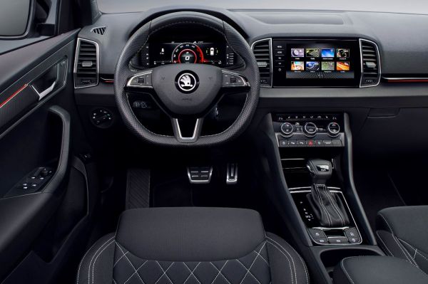 Amíg a tegnap bejelentett Karoq Scout esetén csak optikai módosításokat alkalmaztak, a Sportline változatnál van műszaki újdonság is, hiszen felár ellenében egyedül itt lehet választani a 2,0 literes turbós benzinmotort 190 lóerős teljesítménnyel. A belépőt egyébként a 150 lóerő jelenti, tehát az 1,0 literes alapmotor nem választható a sportos külső-belső megjelenéssel, de itt nem kell rögtön befizetni az összkeérkhajtásra, mint a Scoutnál. Az átalakított lökhárítók mellett 19 colos Vega nevű felnik, sötétített ablakok és fekete tetősínek teszik különlegessé a külsőt, az utastérben ezüst díszvarrással feldobott sportülések jelentik az újdonságot, amelyeket újfajta, háromrétegű, különösen jól szellőző Thermoflux szövettel kárpitoznak. Bőr borítású a sportkormány, rozsdamentes acél pedálokat taposhat a vezető, a tetőkárpit fekete.