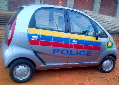 Kissé komikus hatást kelt a fényvisszaverő matricával és villogóval felszerelt Tata Nano, de a részeg külföldi turisták körében talán hatásos lehet. A röhögéstől biztos abbahagyják majd a rendbontást…