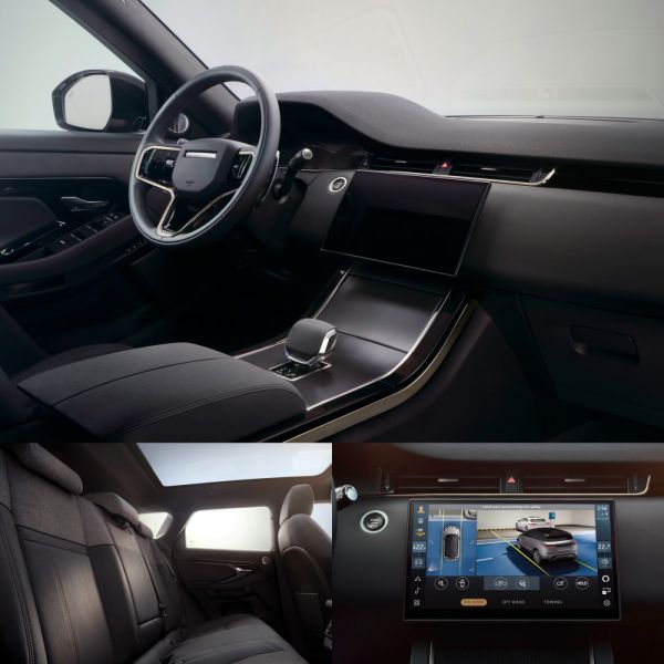 Külsőre alig változott valami a Range Rover Evoque 2024-es modellévi változatánál, hiszen a 2 drágább modellnél adják az új nappali menetfényt mutató Pixel LED fényszórókat (1 lámpában 4 darab, 67 LED-et tartalmazó egység), egyébként a hűtőrács mintáját rajzolták át. Bent a középkonzolon már a 11,4 colos képátlójú ívelt érintőképernyőt látjuk, eltűntek a korábbi fizikai kezelőelemek, fejlődött a szolgáltatások száma és sebessége is. A kellemes légkörről a PM2.5 méretű részecskéket kiszűrő légkondicionáló gondoskodik.