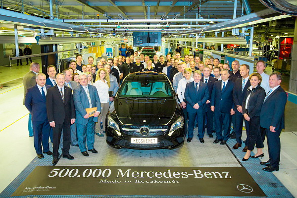 Az 500.000-dik Kecskeméten gyártott autó, egy kozmoszfekete színű Mercedes-Benz CLA modell, ami magyar tulajdonoshoz kerül. „A termelési jubileum a több mint 4.000 dolgozónk közös sikere. Felkészült szakembereink, elkötelezett munkatársaink segítségével csúcsminőségű gépkocsikat állítunk elő. A kecskeméti Mercedes-Benz Gyár sikeres csapatának és termékeinek köszönhetően a jövőben is rendkívül jó kilátásokkal rendelkezik. További fejlesztéseket tervezünk. Jelenleg is zajlik egy 15 millió eurós beruházásunk, melynek keretében új innovatív logisztikai koncepciót vezetünk be és bővítjük logisztikai csarnokunkat” – hangsúlyozta Christian Wolff, a Mercedes-Benz Manufacturing Hungary Kft. 2016. január 1-jével kinevezett gyárigazgatója. Wolff köszönetet mondott továbbá a Mercedes-Benz Gyár munkatársainak, beszállítóiknak, partnereinek a politika és a közigazgatás területéről, a helyi társadalmi szervezeteknek, és kiváltképp Kecskemét városának a folyamatos és konstruktív együttműködésért.