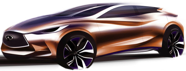 Az Etherea tanulmány még csak jelzés értékű volt, mondván egy alsó-középkategóriás autóval szeretné bővíteni kínálatát a Nissan prémiummárkája. Azóta sok idő eltelt, és itt az első hivatalos vázlat a sorozatgyártású autót előrejelző tanulmányról, ami majd a Frankfurti Autószalonon mutatkozik be.