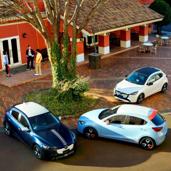 A Sport/Sport+ készül a sportos megjelenésre vágyóknak méhsejt-mintás hűtőrácsbetéttel és fekete karosszériadíszekkel, a DB-nél 11 karosszériaszín/6 felni dísz-szín/3 tetőszín közül lehet összeállítani a kívánt megjelenést, összesen 198 variáció létezik. A Clap Pop esetén kontrasztos, a Rookie Drive-nál pedig narancssárga díszekkel dobják fel a megjelenést, szembetűnő, hogy ezeknél a modelleknél befalazzák a hűtőrácsot is. A megújult Mazda2-es csak 1,5-ös motorokkal készül, az 1,5-ös szívómotor alapesetben 110 lóerős, ez kézi vagy automatikus váltóval, első- vagy összkerékhajtással kérhető, a 116 lóerős változat csak kézi váltóval és elsőkerékhajtással jön, az 1,5-ös turbódízel 105 lóerős, kézi vagy automatikus váltóval és első- vagy összkerékhajtással kérhető.