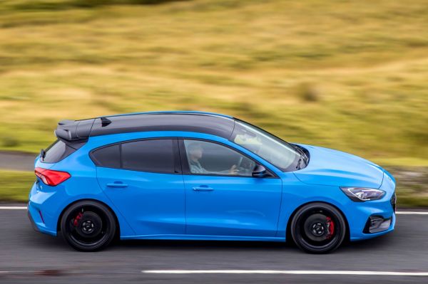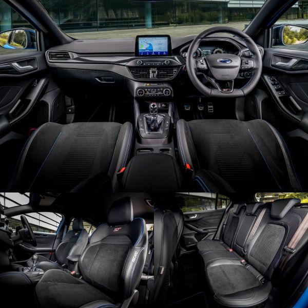A hasmagasságot 10 mm-rel csökkentik – további 20 mm-rel tekerheti lejjebb a karosszériát a tulajdonos –, a rugók 50%-kal feszesebbek a szériánál. Az elektronikusan vezérelt lengéscsillapításnak van egy Track Mode-ja is, amelyet a Nürburgringen finomhangoltak a Ford Performance mérnökei. A 19 colos könnyűfém felnik a Michelin Pilot Sport 4S gumikkal 10%-kal könnyebbek a széria kerekeknél. Végezetül ott van még az elektronikusan vezérelt differenciálzár, ami tengelykapcsolókkal irányítja a nyomatékot, akár 100%-ot tud küldeni egy oldalra, ha csak ott érez tapadást. Csak az ötajtós karosszériával választható a Ford Focus ST Edition, a karosszéria Azura Blue színű, ehhez fekete díszek és tető jár, az utastérben a Recaro kagylóüléseken kék cérnával követik el a díszvarrást.