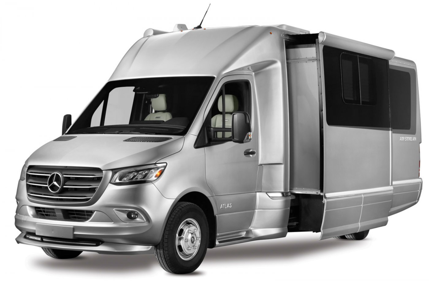 Az Airstream a névadó alumínium lakókocsik mellett lakóautók gyártásával is foglalkozik, az egyik legkisebb modelljük a 432 cm-es tengelytávolsággal rendelkező Sprinter 3500-asra épülő Atlas, amelynek igazi luxusautó a szegmensben – a 78 millió Ft-os indulóár ismeretében ezen nem lehet csodálkozni.