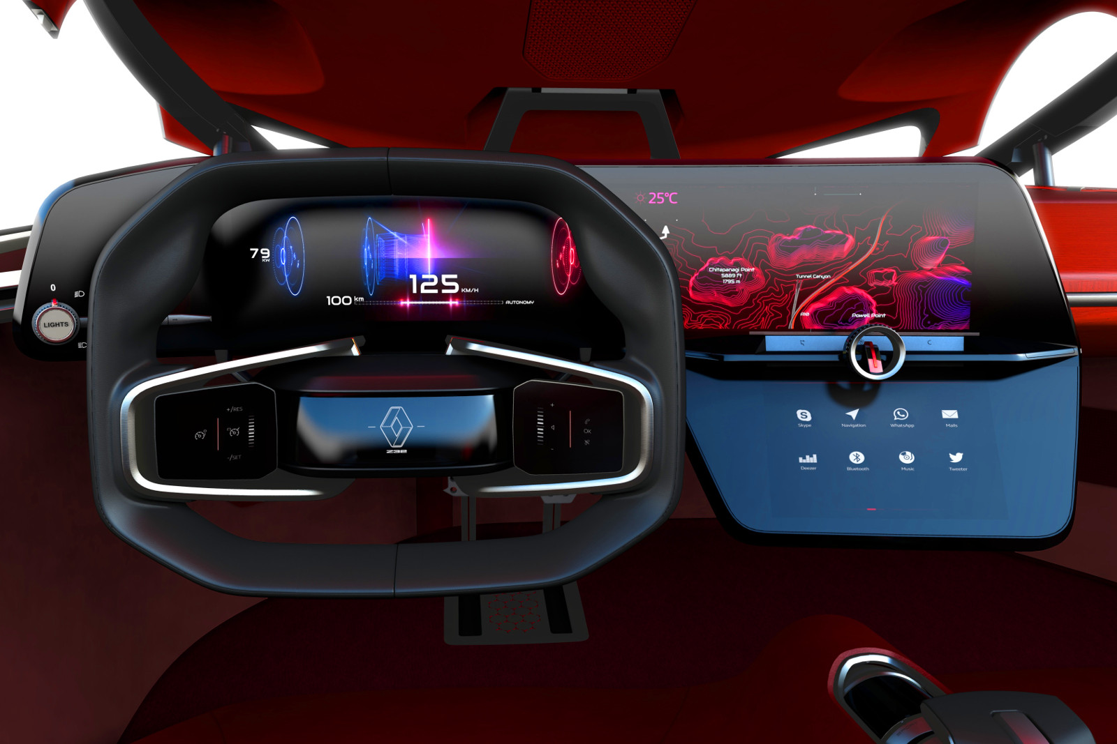 Beismerte a Renault, hogy manapság nem valami jó autóbelsőket készít, hiszen a Trezor nevű tanulmányautóval kapcsolatban leírják, hogy a márka javuló kifinomultságú utasterét vetíti előre; nem spóroltak a vörös bőrrel és a valódi fa betétekkel. Karcsúbb a forma, jobb a hálózati kapcsolódás – ennek örülhetnek majd a jövőbeli Renault-k vásárlói. A különleges sportos vezethetőségről biztosan le kell majd mondaniuk, hiszen utcai autóban nem lehet reprodukálni a talajtól mindössze 25 cm-es magasságban lévő tömegközéppontot – a saját tömeg 1600 kg. A karosszéria karbon utascella köré épül, amelyhez elöl-hátul acélból készített segédvázak csatlakoznak.