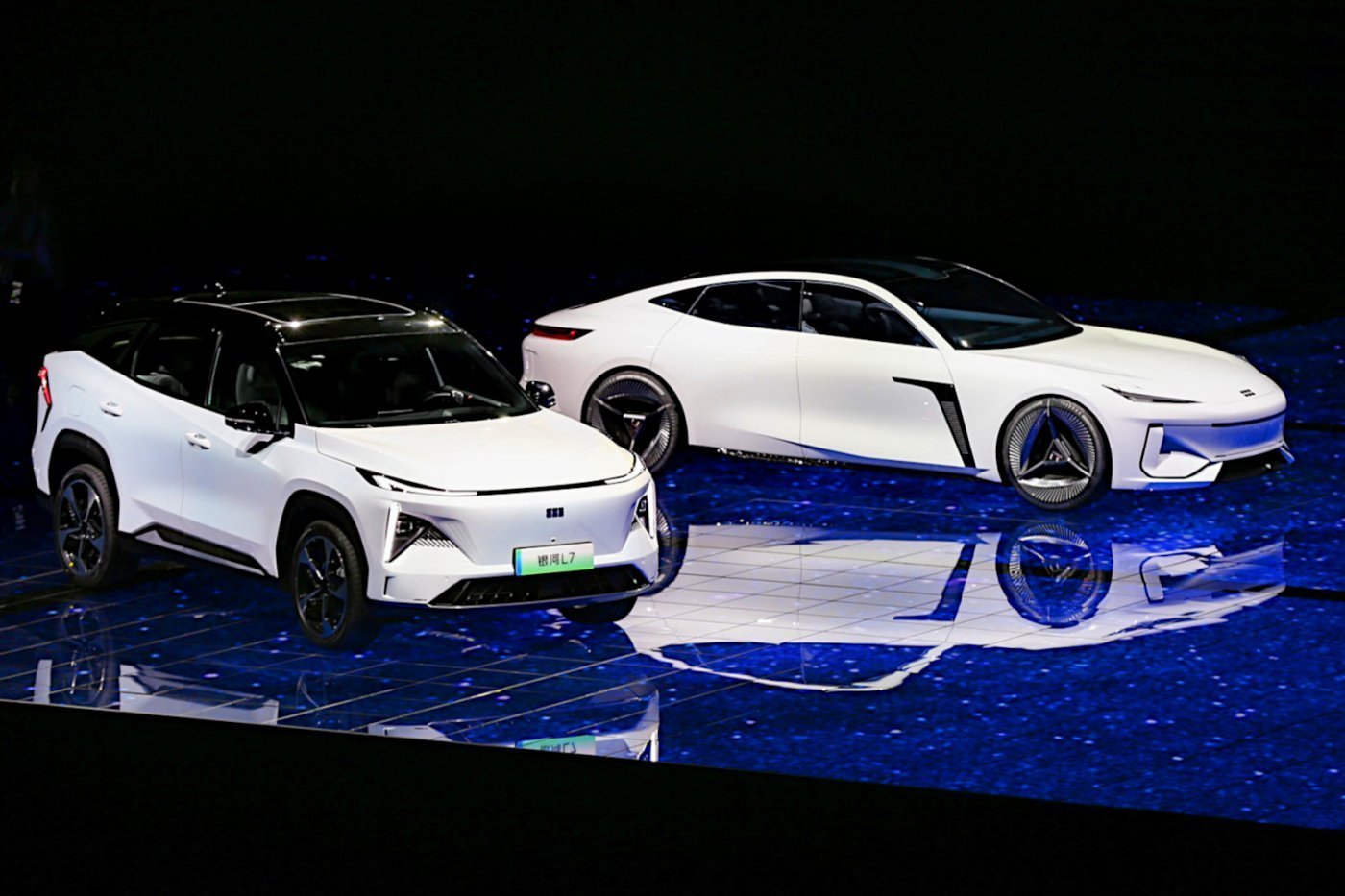 A plug-in L7-est a 3. negyedévben követi az L6-os szedán, és még az év vége előtt piacra dobják az első akkumulátoros-elektromos autót, az E8-as szedánt. Utóbbi előzetesének tekinthető a Galaxy Light tanulmány, amelyet az E-CMA villanyautó-alapon valósítottak meg látványos ajtókkal, az autó hátsó részéből előbújó drónnal, ami nehéz helyzetekben ad új perspektívával segítséget az autó vezetőtámogató rendszereinek. A karosszéria légellenállási együtthatója mindössze Cw 0,19, ami a nagy hatótávolság garanciája.