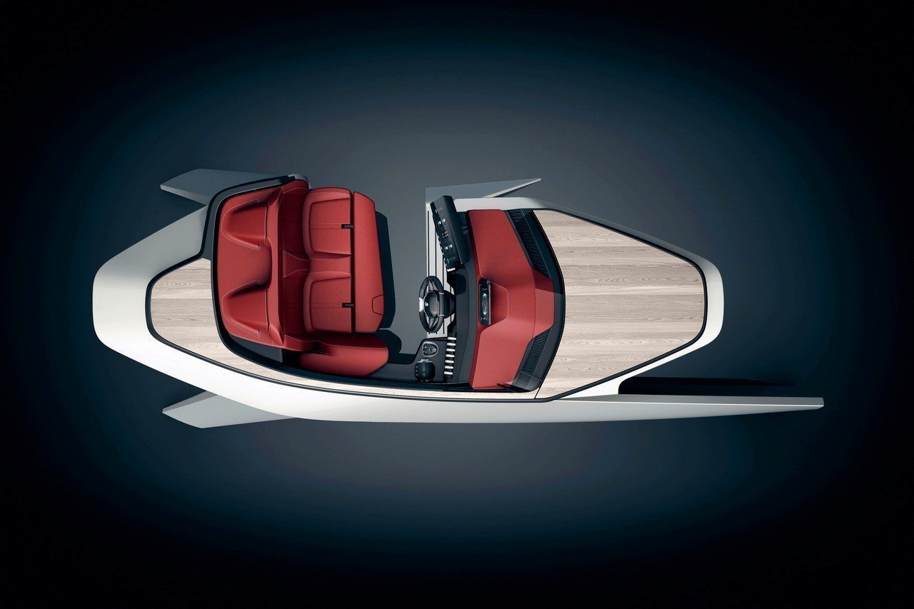 Nem úszik a vízen a Peugeot Sea Drive tanulmánya, hiszen az csak egy fél hajótestet kapott annak érdekében, hogy az i-Cockpit műszerfal hajókba szánt változatát könnyen megtekinthessék a párizsi Salon Nautique kiállítás látogatói.