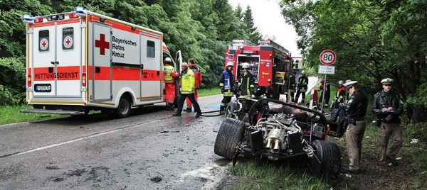 A május 30-án, délelőtt 11 órakor bekövetkezett baleset idején száraz volt az út, más jármű nem volt érintett a balesetben, tehát a sofőr hibázott. A megpördülés során egy fának ütközött oldalával az acél csővázas sportkocsi, olyan szerencsétlenül, hogy a 43 éves férfi utas a helyszínen életét vesztette.